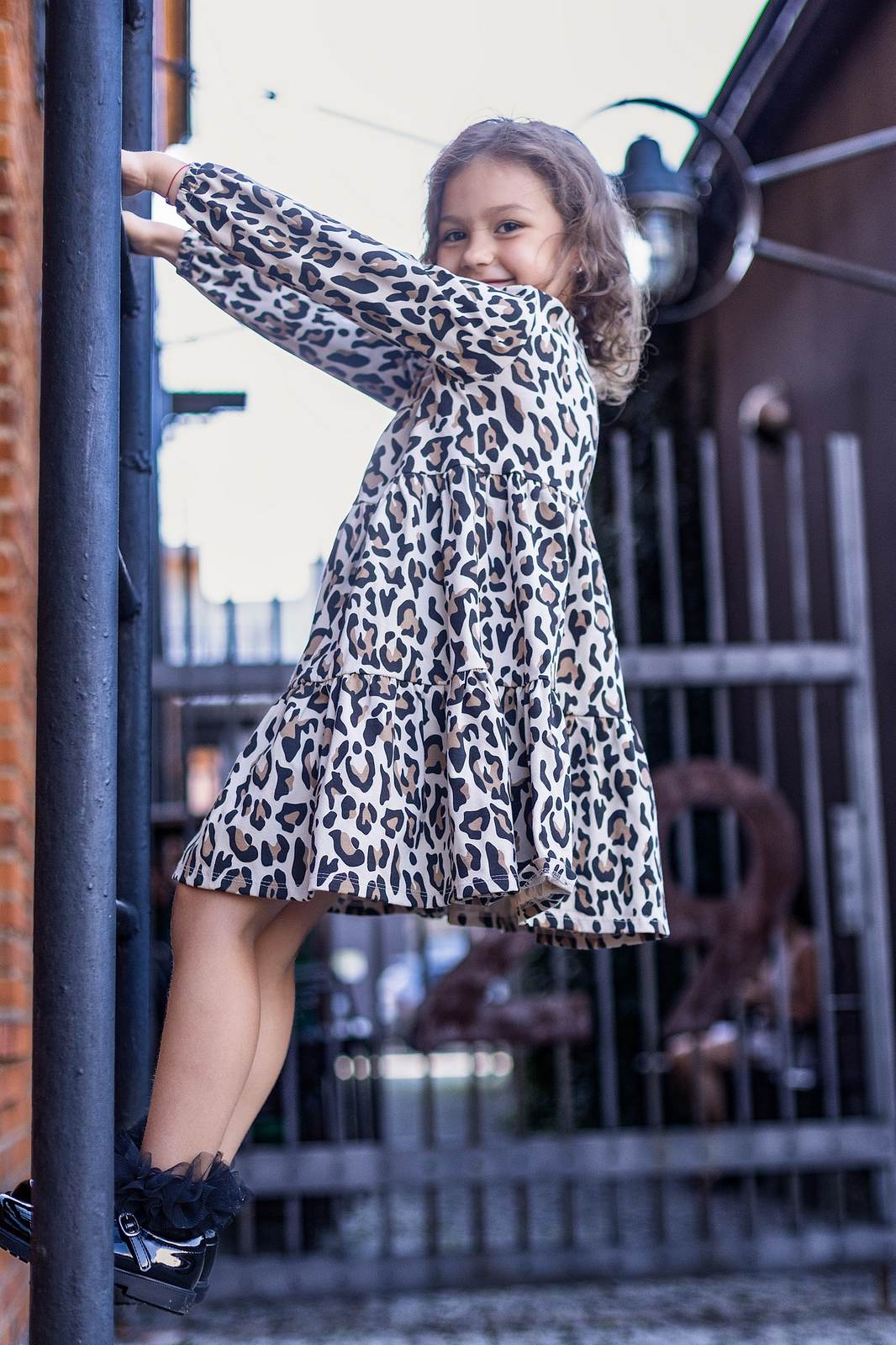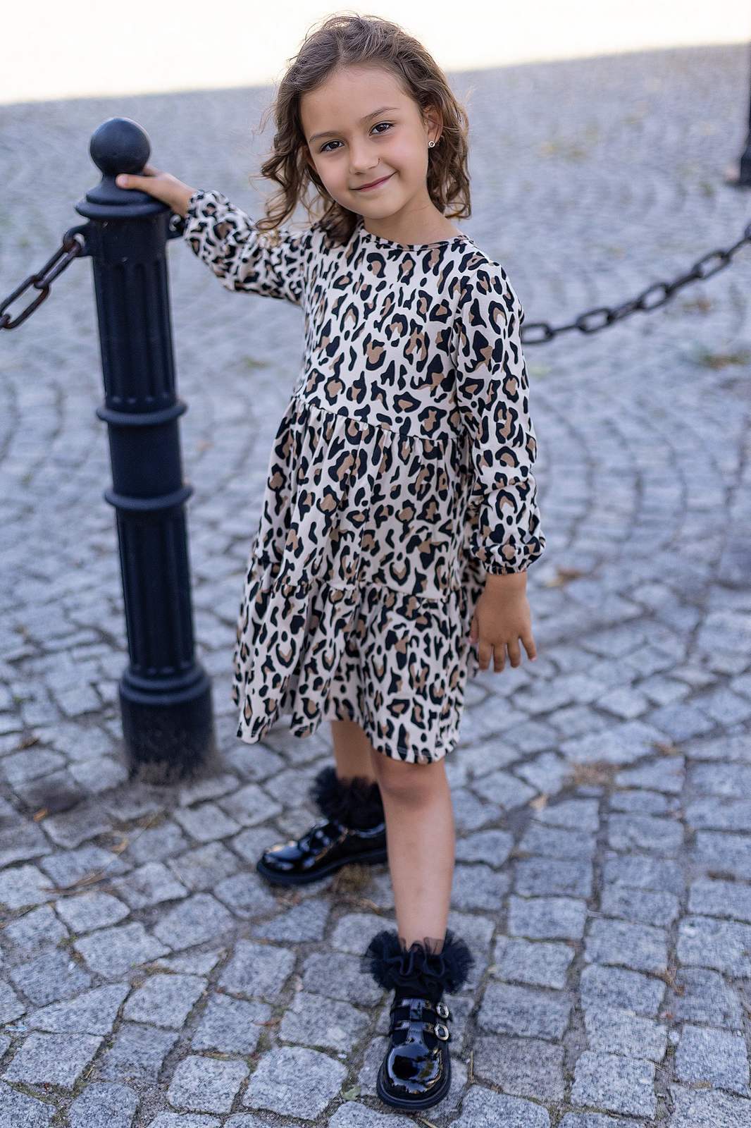 Ta bawełniana sukienka w panterkę to doskonała propozycja na jesienne dni dla dziewczynek. Wykonana z miękkiego materiału, łączy w sobie modny wzór z praktycznym fasonem, który świetnie sprawdzi się u dziewczynek o różnych sylwetkach.