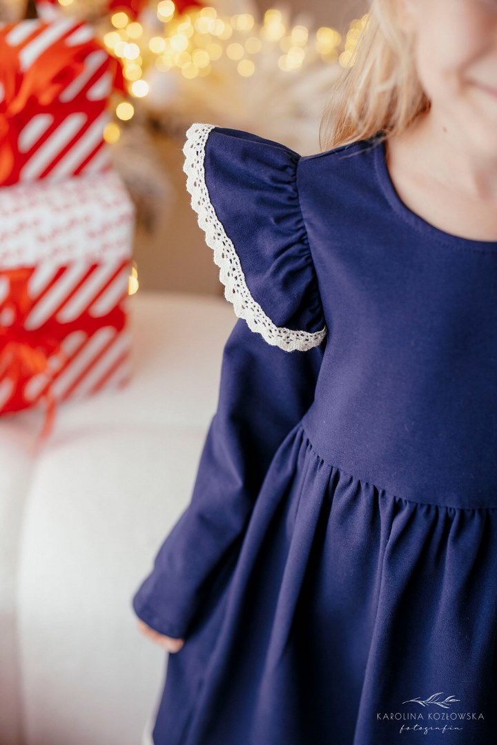 Granatowa, bawełniana sukienka w stylu boho to doskonały wybór na święta Bożego Narodzenia, przyjęcia oraz codzienne stylizacje. Wykonana z wysokogatunkowej bawełny, gwarantuje komfort noszenia, jednocześnie prezentując się elegancko i subtelnie. To uniwersalna propozycja dla każdej małej dziewczynki, która chce poczuć się wyjątkowo. sprawdzi się również na uroczystościach szkolnych i przedszkolnych.
