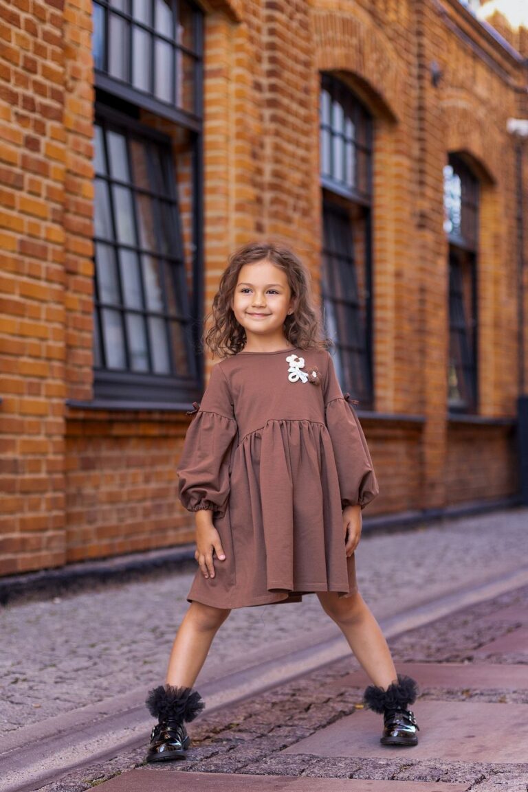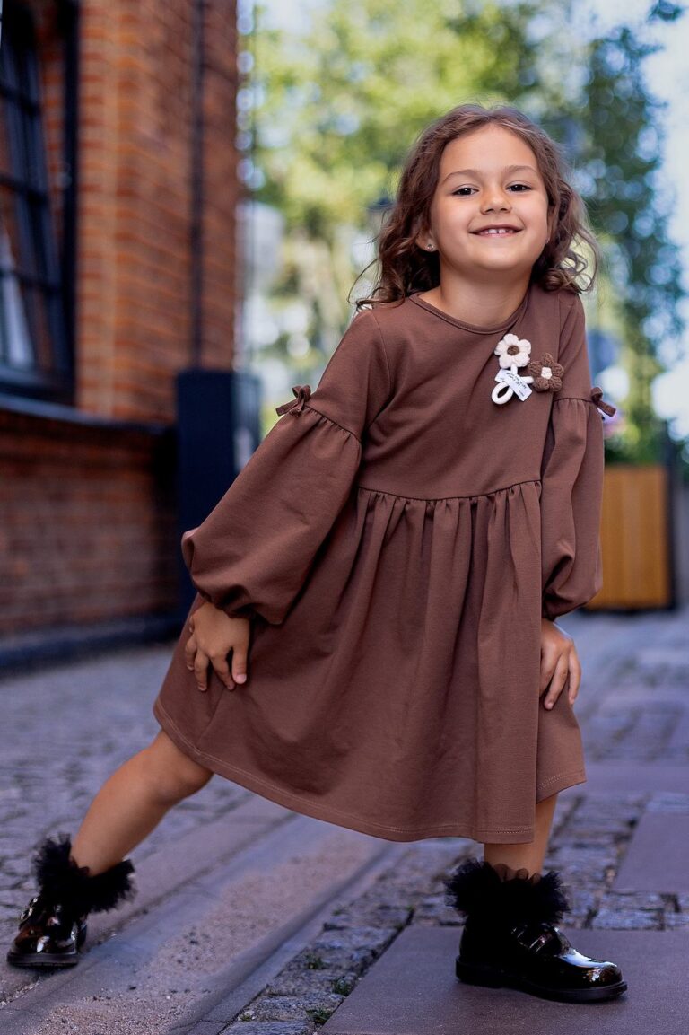 Sukienka świetnie sprawdzi się podczas rodzinnych spotkań, jesiennych spacerów oraz codziennych aktywności w przedszkolu czy szkole. Jej ciepły kolor i delikatne zdobienia dodadzą dziewczynce uroku w każdej sytuacji.