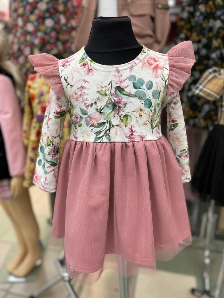 Odkryj elegancję połączoną z wygodą w naszej bawełnianej sukience dla dziewczynki, dostępnej w rozmiarach od 86 do 128 – idealnej dla małych dam w wieku od roku do 8 lat. Kreacja wykonana z najwyższej jakości bawełny premium. Sukienka prezentuje urokliwy kwiatowy print w górnej części, co sprawia, że jest nie tylko wygodna, ale również stylowa. Długie rękawy czynią ją idealnym wyborem na chłodniejsze dni, zarówno jesienne, jak i zimowe. Detal w postaci tiulowych motylków na ramionach dodaje jej dziewczęcego uroku, podczas gdy dolna część pokryta tiulem w odcieniu brudnego różu nadaje całości wyjątkowej delikatności. Sukienka doskonale sprawdzi się zarówno podczas codziennych spacerów, jak i rodzinnych uroczystości. Polska produkcja.