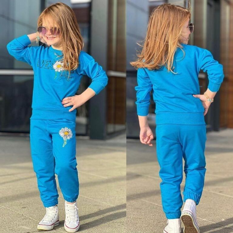 Uroczy komplet dziewczęcy z motywem stokrotki, idealny do codziennych zabaw i aktywności. Turecka bawełna to komfort noszenia. Zestaw składa się z bluzy i spodni, co sprawia, że jest praktyczny na każdą okazję.