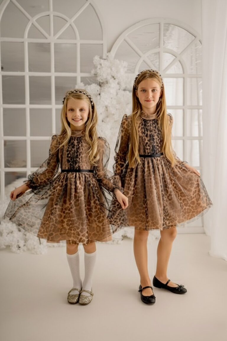 Ta urocza sukienka tiulowa w kolorze beżowym z panterkowym printem to doskonały wybór dla starszej dziewczynki, która pragnie wyglądać elegancko i stylowo. Idealna na różne okazje, łączy w sobie modny design oraz wygodę noszenia dzięki bawełnianej podszewce.