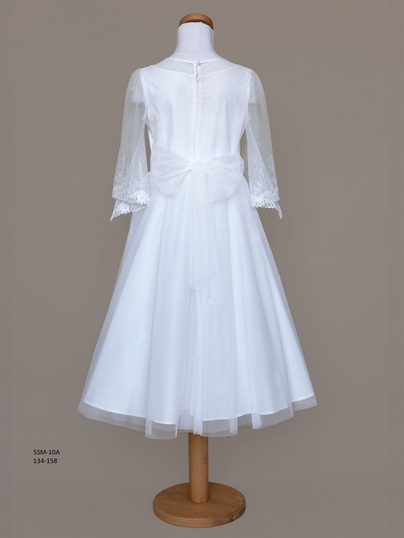 Sukienka w białym kolorze do Komunii posiada unikalne hafty na rękawach i koronkowe aplikacje. Dzięki praktycznym rozwiązaniom, takim jak bawełniana podszewka i wiązanie w talii, zapewnia komfort noszenia przez cały dzień. sukienka idealnie sprawdzi sie na kościelnej uroczystości oraz po komunii na przyjęciu w restauracji. Tabela wymiarów na ostatnim zdjęciu.