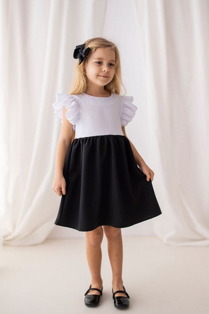 Ta propozycja to doskonały wybór na ważne uroczystości szkolne takie jak zakończenie czy początek roku. Biało-czarna sukienka wizytowa dla dziewczynki łączy w sobie ponadczasową elegancję z wygodą, dzięki czemu idealnie sprawdzi się zarówno podczas akademii, jak i na uroczystościach koscielnych. Starannie dobrane materiały zapewniają miękkość i odpowiednią przewiewność, a klasyczna kolorystyka pozwala stworzyć wiele stylizacji.