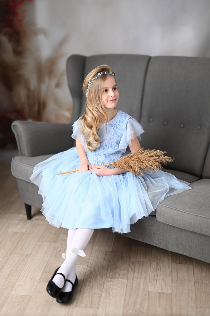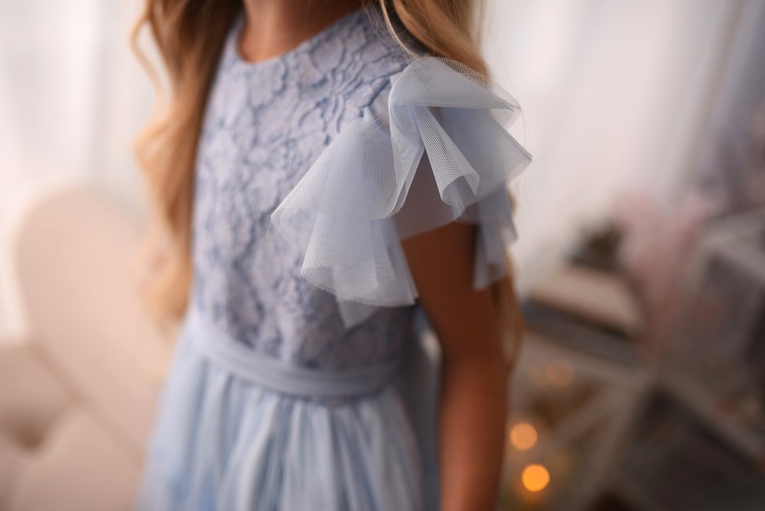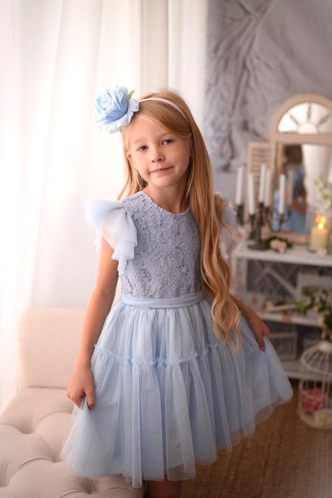 Błękitna sukienka z koronkową górą doskonale sprawdzi się na wyjątkowe okazje takie jak komunie, wesela, czy inne uroczystości rodzinne. Dzięki bawełnianej podszewce jest komfortowa i przyjazna dla skóry dziecka. Idealna propozycja dla dziewczynek, które uwielbiają wyglądać elegancko i modnie.