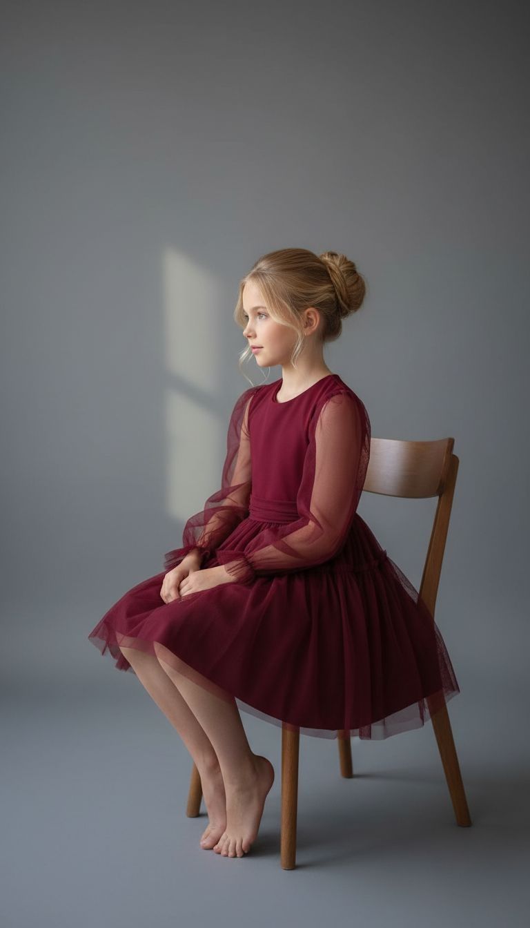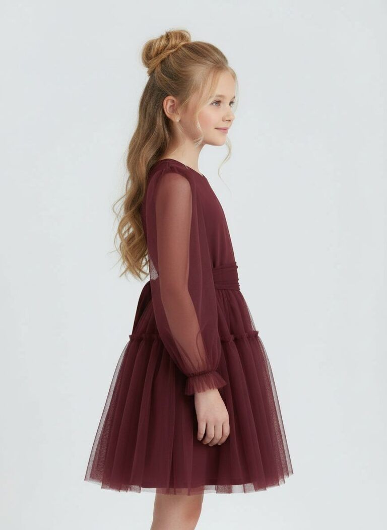 Elegancka i efektowna – ta bordowa sukienka z tiulowym dołem to wybór, który zachwyca od pierwszego spojrzenia. Jej lekkość, staranne wykończenie i świąteczny charakter sprawiają, że każda dziewczynka poczuje się w niej wyjątkowo. To doskonała propozycja na rodzinne uroczystości, sesje zdjęciowe i wszystkie te chwile, które warto celebrować z klasą.