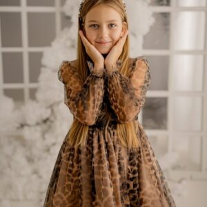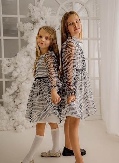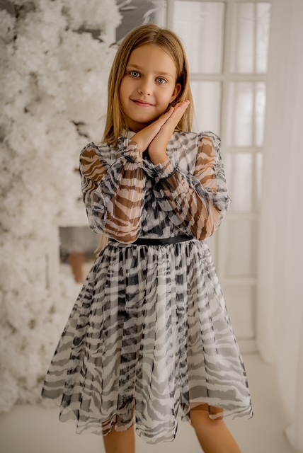Ta dziewczęca sukienka z motywem zebry to propozycja, która łączy w sobie modny wzór z praktycznym krojem. Idealna na chłodniejsze dni dzięki wygodnemu golfikowi, który zapewnia dodatkowe ciepło i ochronę przed wiatrem.