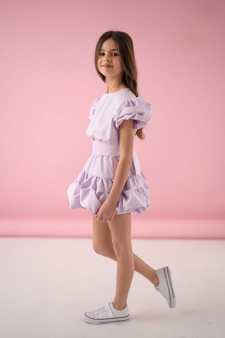 Kombinezon to idealny wybór na letnie dni, kiedy Twoja córka chce czuć się swobodnie i stylowo jednocześnie. Fioletowy kolor nadaje mu wyjątkowego charakteru, a modny drapowany dół sprawia, że jest to propozycja, która z pewnością przyciągnie uwagę. Dzięki gumce w pasie, można go łatwo dopasować, co zapewnia wygodę i swobodę ruchów.