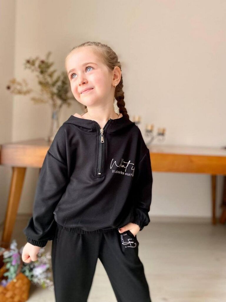 Czarny dres dla dziewczynki z wiskozą – idealny na sportowe wyzwania