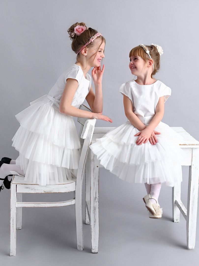 Efektowna sukienka w kolorze delikatnej śmietany, doskonała na różnorodne wyjątkowe okazje. Sukienka z trzema tiulowymi falbankami, które dodają jej lekkości i elegancji, sprawdzi się zarówno na uroczystości komunijne, jak i wesela. Uszyta z trwałych i wysokojakościowych materiałów.