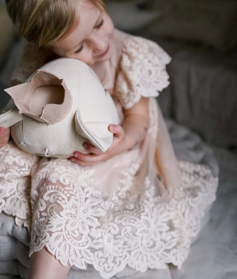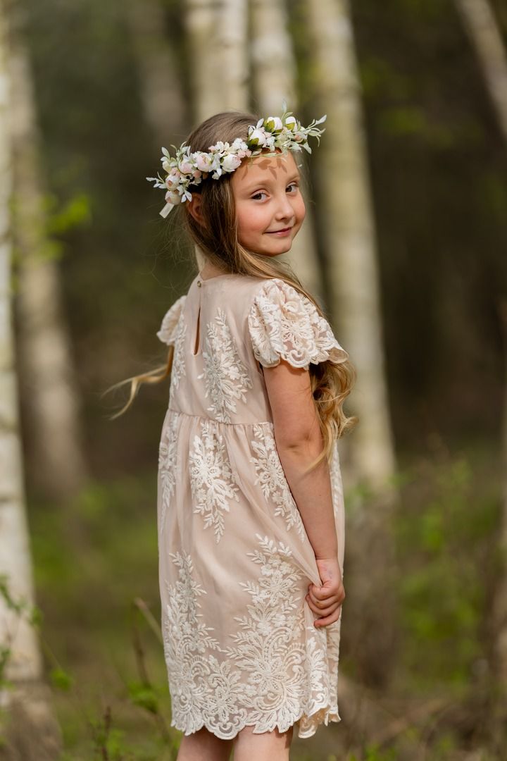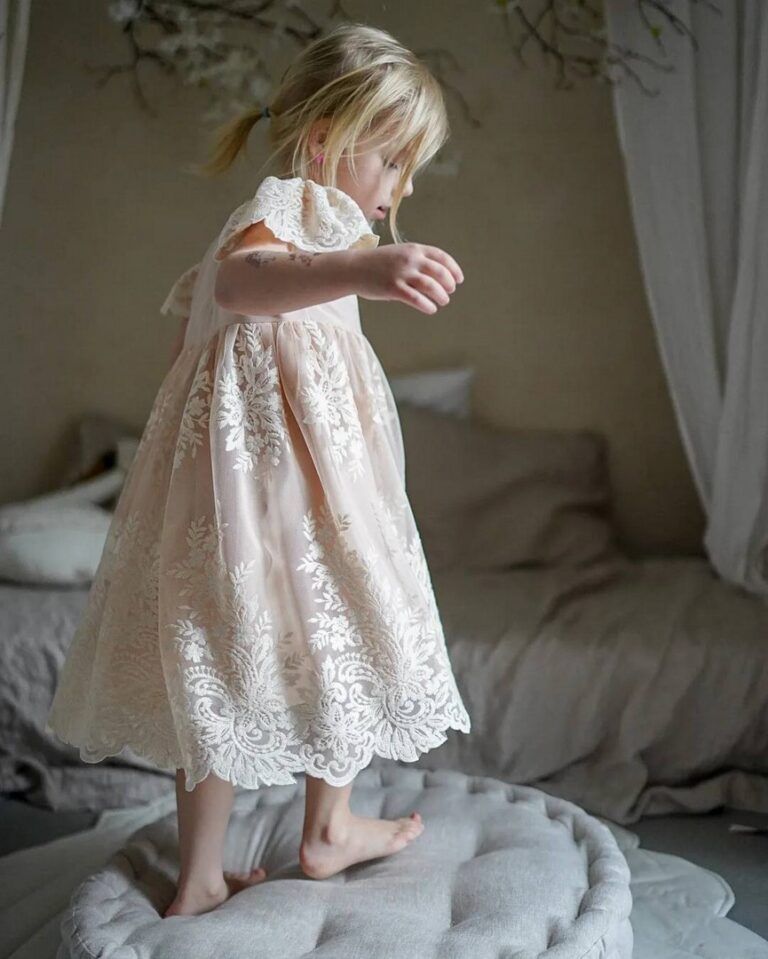 Elegancka i wyjatkowa sukienka dla dziewczynki. W tym projekcie głównym punktem chwytającym oko jest piękna hiszpańska koronka i tiul w kolorze herbacianej róży. Sukienka została zaprojektowana i uszyta w Polsce, co gwarantuje wysoką jakość wykonania.