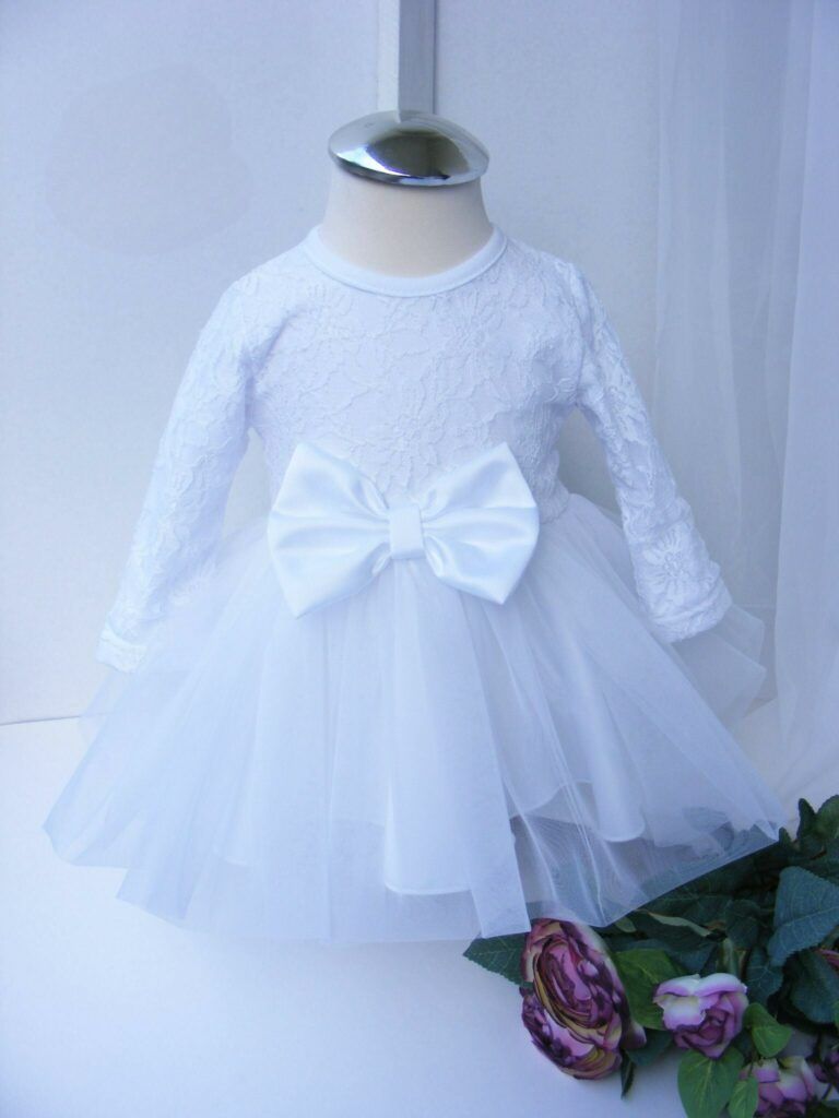 Sukienka w kolorze białym dla najmłodszych dam. rozmiar 62 – 80. Polska produkcja, 95%bawełny , 5 % elastan.