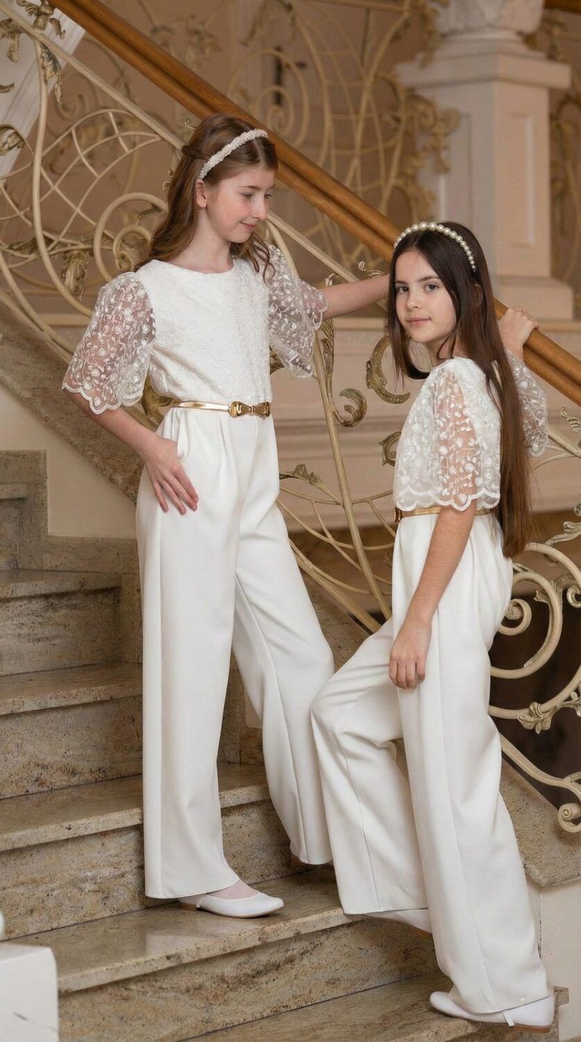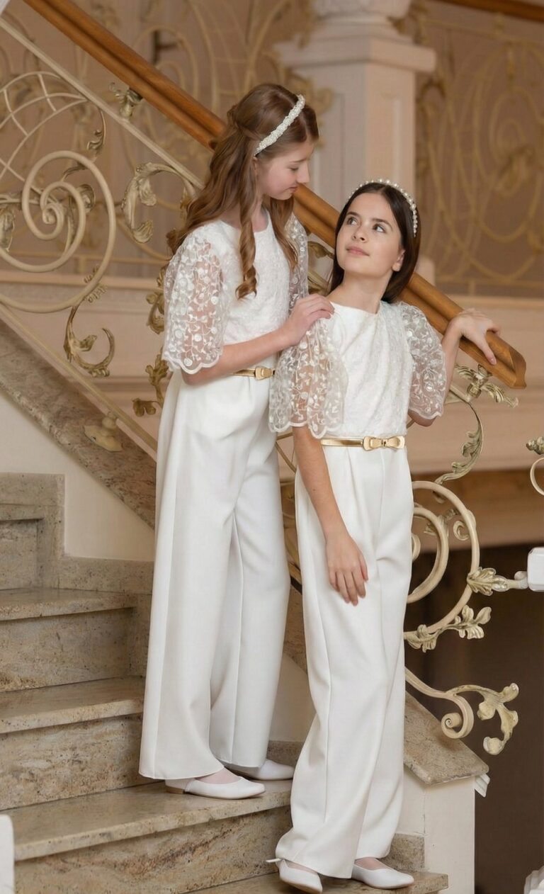 Ten elegancki kombinezon to idealna propozycja na przyjęcia, uroczystości rodzinne, akademie szkolne czy przebranie po komunii. Dzięki swojej klasycznej bieli i koronkowym detalom sprawdzi się na wiele wyjątkowych okazji.