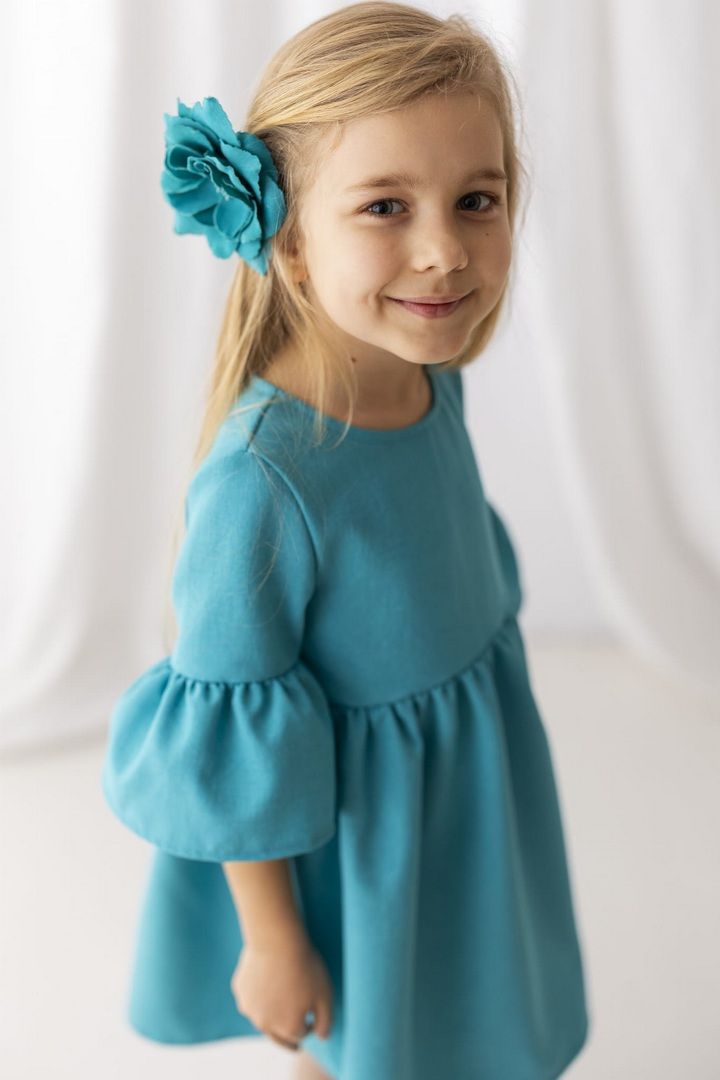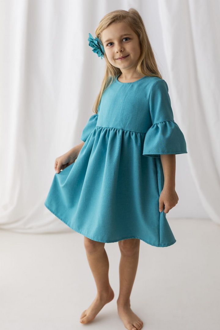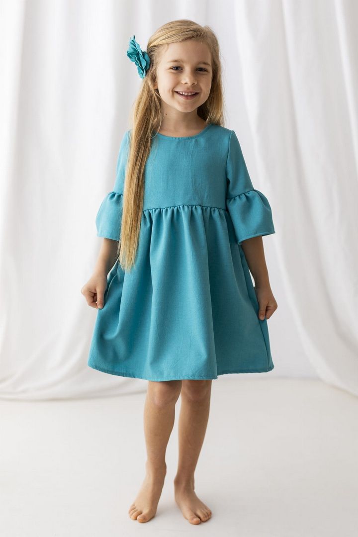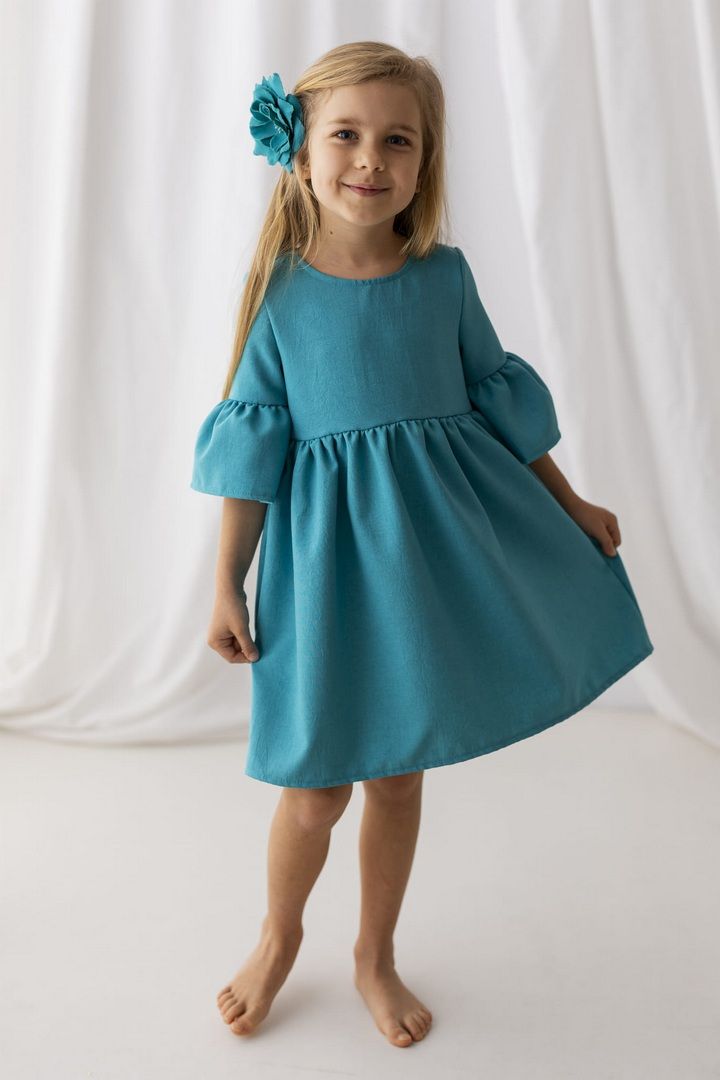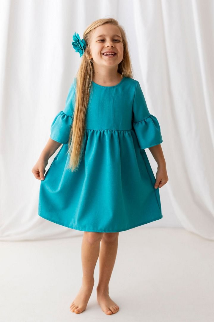 Piękna turkusowa bawełniana sukienka dla dziewczynki to idealny wybór na wiele wyjątkowych okazji. Jej oryginalne wykończenie rękawów w postaci ozdobnych pufek nadaje jej niepowtarzalnego charakteru, a morski kolor wprowadza radosny nastrój. Sukienka jest nie tylko elegancka, ale także praktyczna, co czyni ją doskonałym wyborem na codzienne stylizacje oraz na wizytowe wydarzenia, takie jak przyjęcia komunijne.