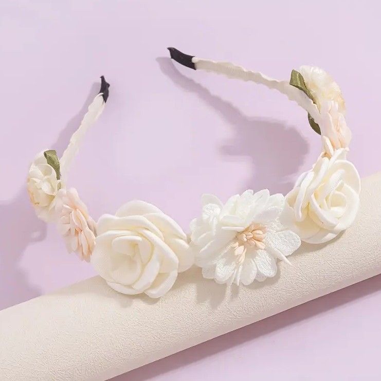 - Elementy: ozdobne kwiaty umieszczone na środku opaski