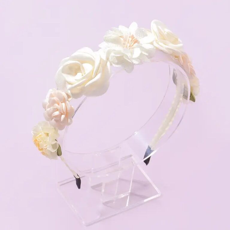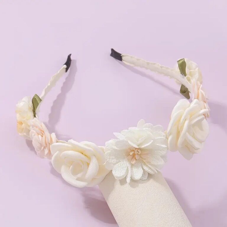 Delikatna opaska w odcieniu ecru to piękny dodatek, który sprawdzi się zarówno na specjalne okazje, jak i na co dzień. Dzięki kwiatowej dekoracji wprowadza dziewczęcy akcent do każdej stylizacji, nie przytłaczając jednocześnie całości stroju. Idealna dla małych dziewczynek, które lubią wyglądać elegancko i schludnie.