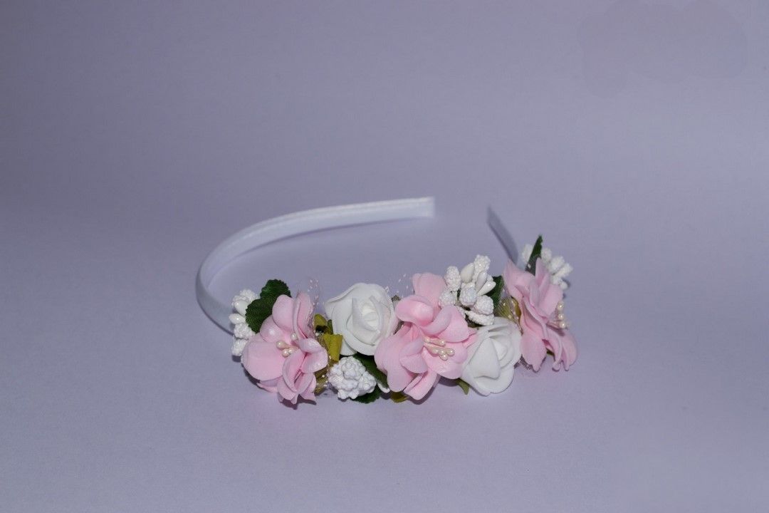 Opaska z różowo-białymi kwiatami
