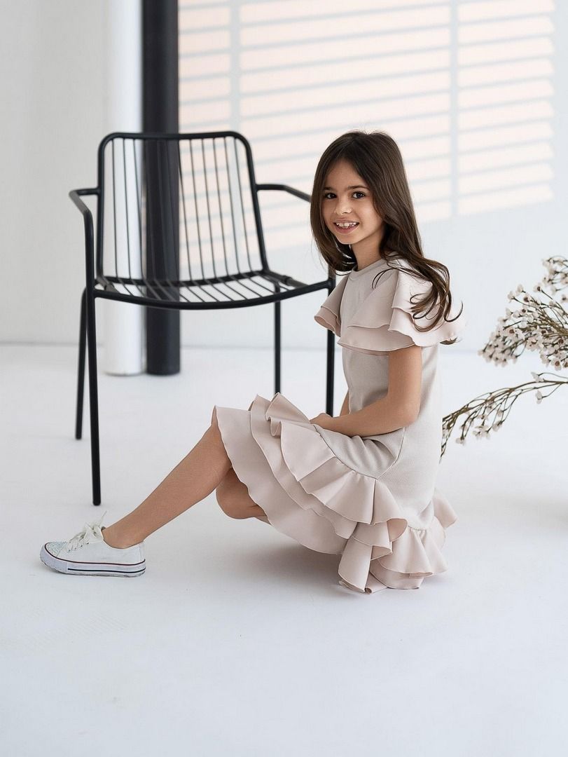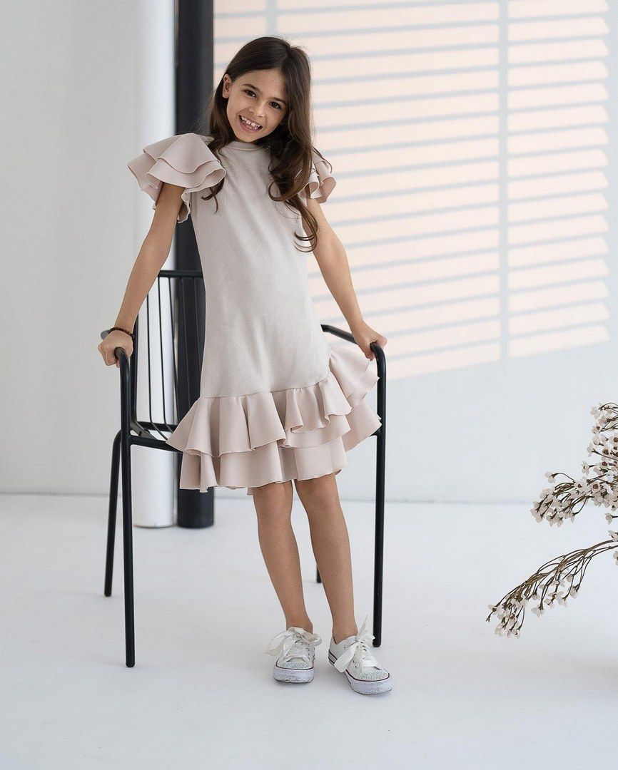 Szukasz idealnej sukienki, która połączy styl z wygodą? Ta beżowa sukienka z prążka z falowanymi rękawami to doskonały wybór dla dziewczynek, które preferują luźniejsze fasony. Wykonana z wysokiej jakości bawełny, zapewnia nie tylko swobodę ruchów, ale także elegancki wygląd, który sprawdzi się na różnorodnych okazjach.