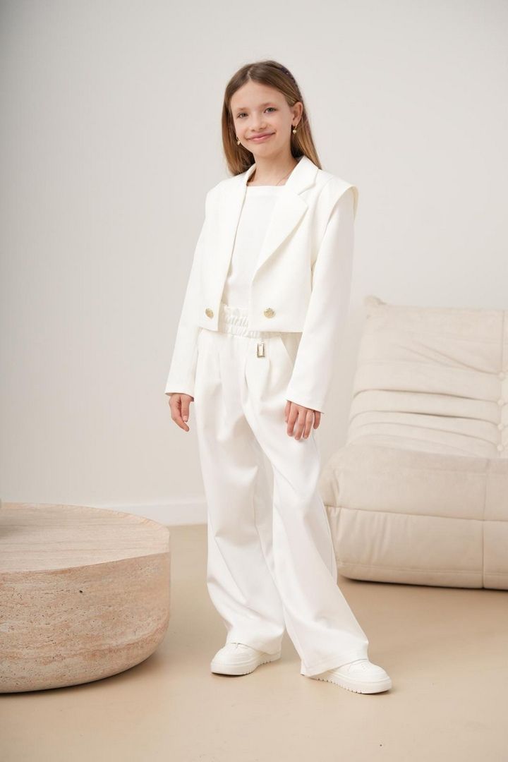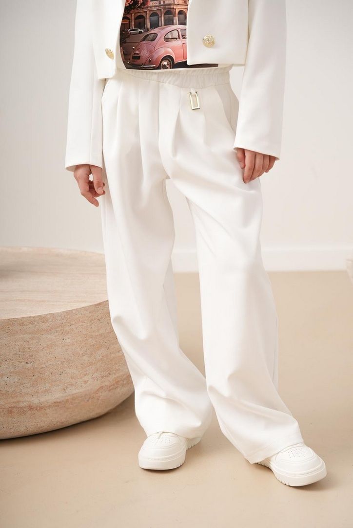 Śmietankowe spodnie garniturowe to doskonały wybór dla dziewczynki, która chce wyglądać stylowo i czuć się swobodnie. Stworzone z myślą o wyjątkowych okazjach, takich jak komunia, przyjęcia czy rodzinne uroczystości, ale sprawdzą się również w nowoczesnych, casualowych stylizacjach.