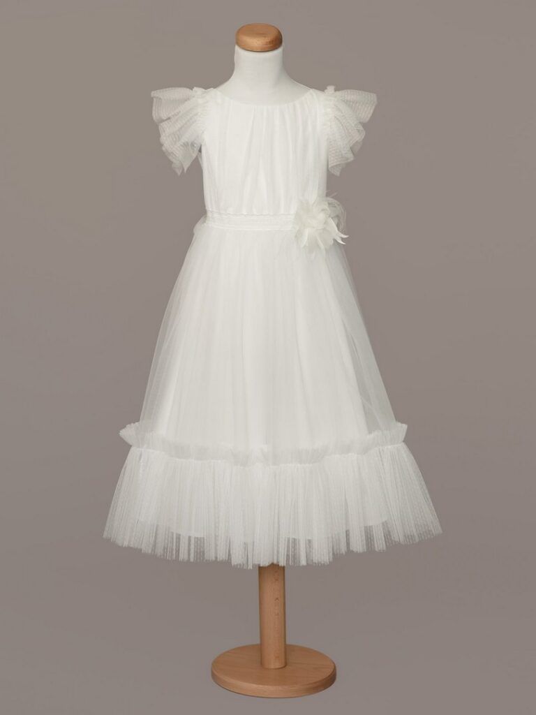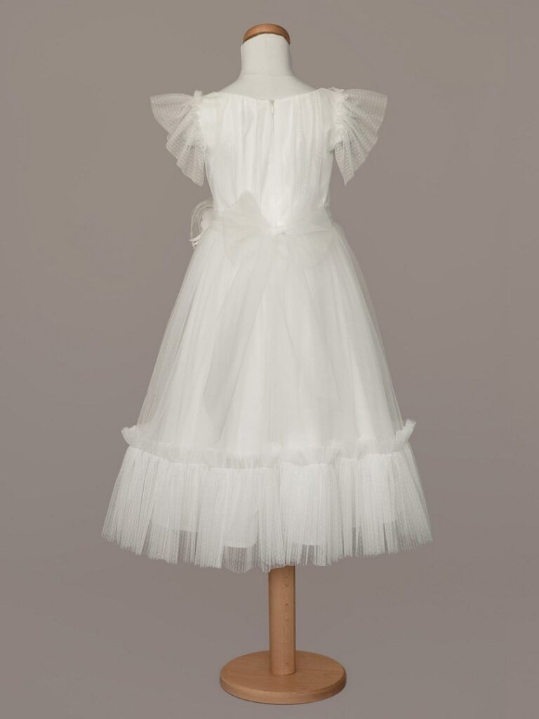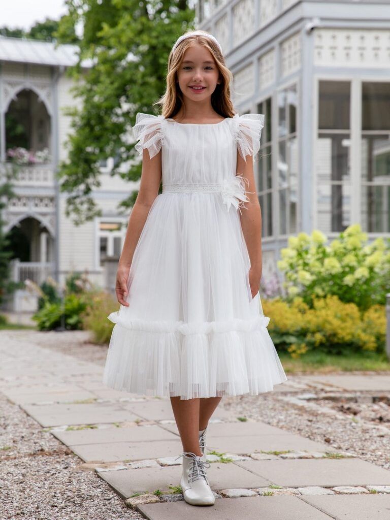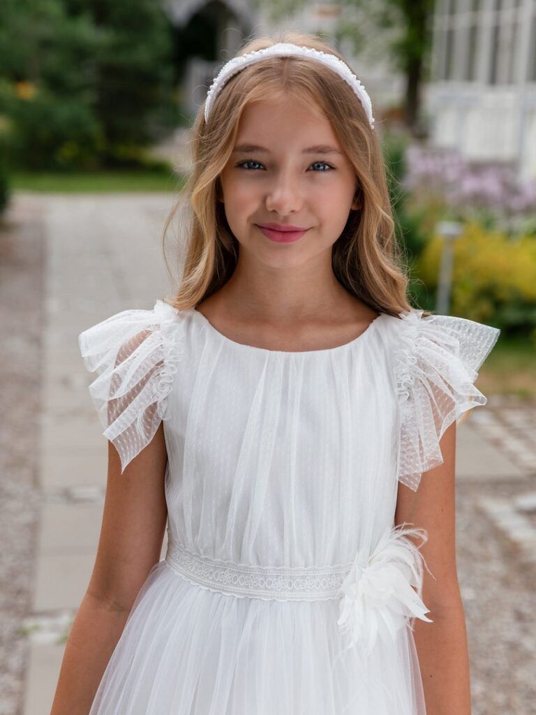 Prezentujemy elegancką sukienkę komunijną z delikatnego tiulu, idealną dla każdej dziewczynki na jej szczególny dzień. Starannie wykonana przez doświadczonych polskich rzemieślników, ta sukienka w kolorze białym łączy w sobie subtelność i klasykę.