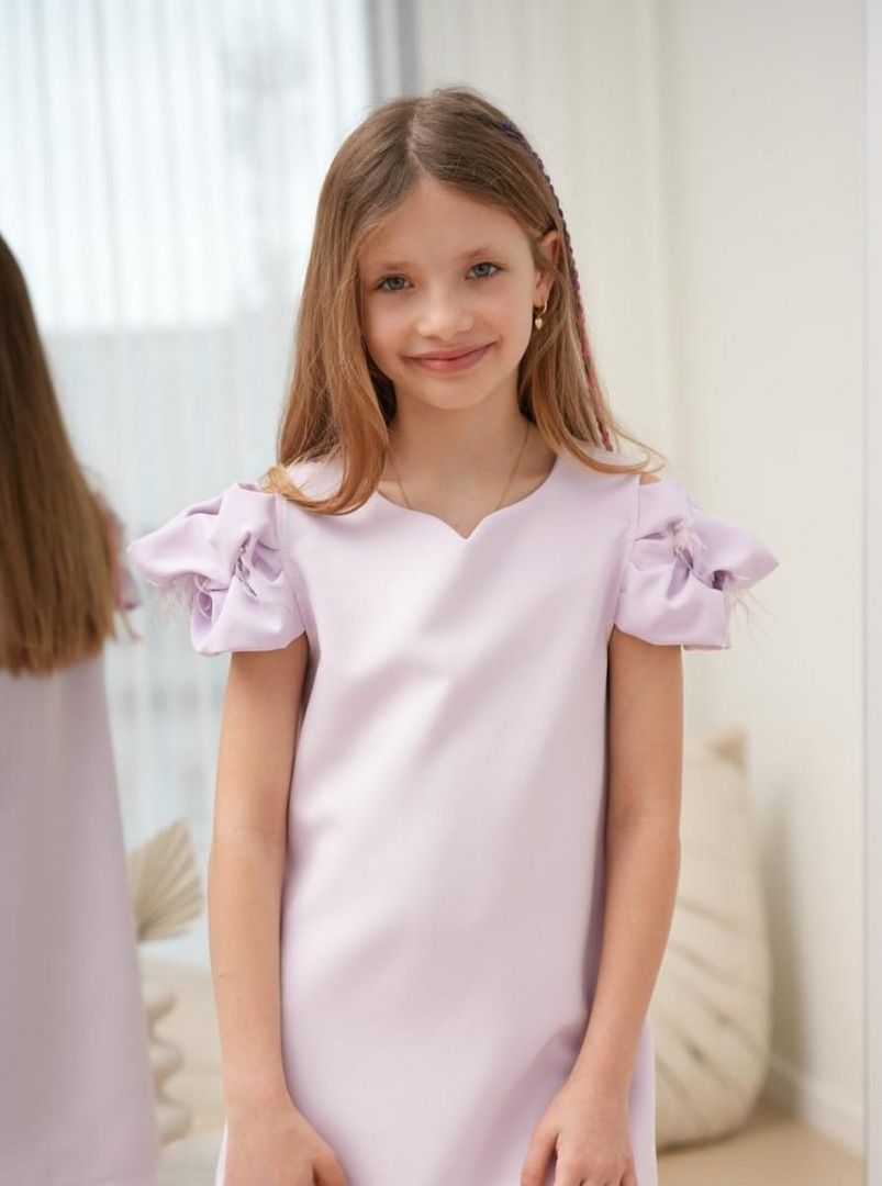 Szukasz idealnej sukienki na wyjątkowe okazje? Ta liliowa trapezowa sukienka z opadającymi rękawami to doskonały wybór dla każdej małej damy. Jej klasyczny krój i fantazyjne detale sprawią, że Twoja córka poczuje się wyjątkowo na każdej uroczystości.